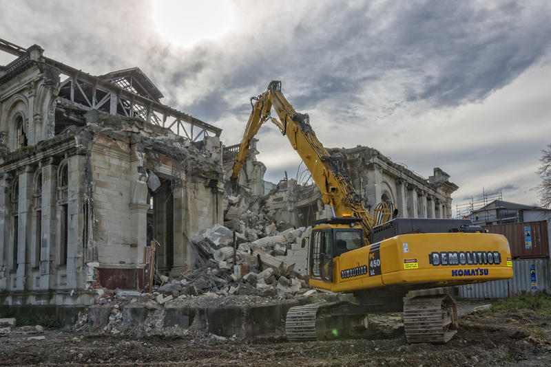 Digital Photograph: Cathedral of the Blessed Sacrament being demolished by digger