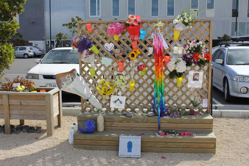 One landscape colour digital photograph taken 22 February 2017 showing an earthquake memorial trellis at the site of the former Canterbury Television building.