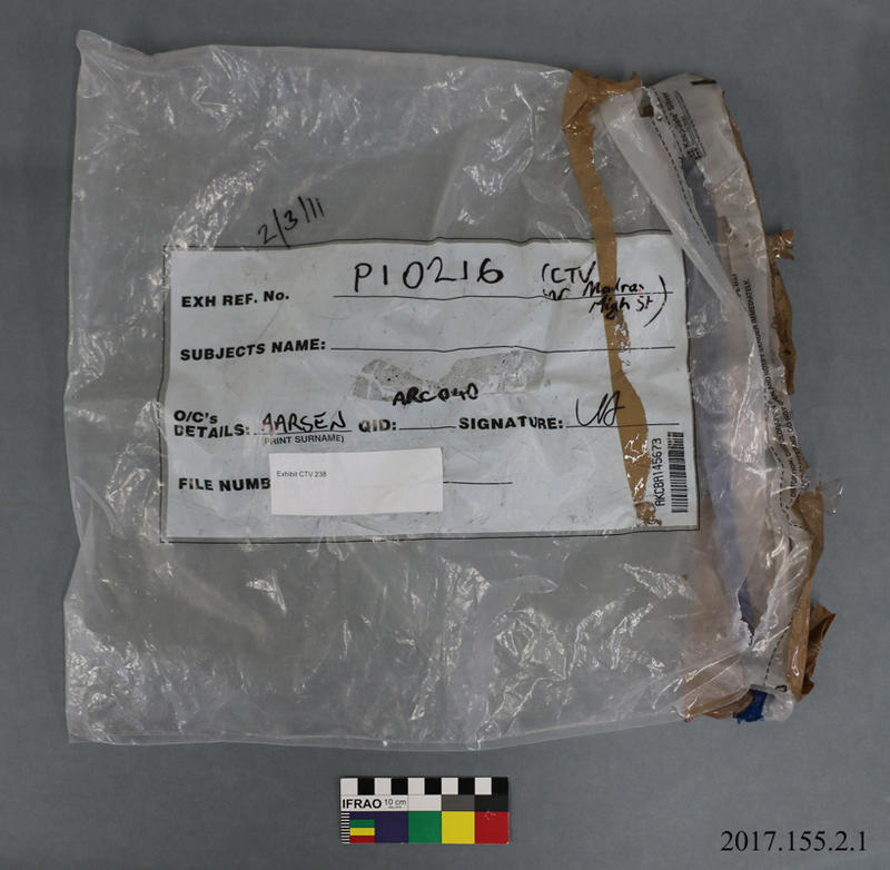 Pink Polar Fleece Jacket: CTV Building One child's pink polar fleece jacket retrieved from the CTV building and a New Zealand Police exhibit label stored in plastic NZ Police exhibit bag. View the original item