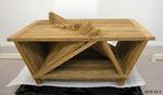 One rectangular coffee table made from lath timber. A ridgeline runs along the top of the table: the ridgeline could be seen as a mountain range or a seismograph reading.