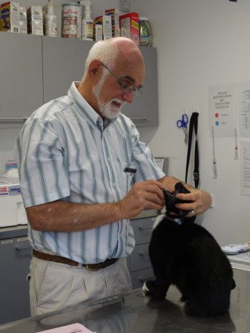 A photograph of a veterinarian giving a stray cat a worming tablet and checking its teeth after the 22 February 2011 earthquake.
