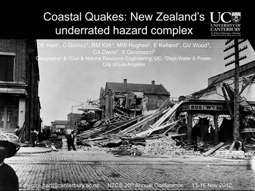 A slide from a presentation by Deirdre Hart on the Coastal Quakes project. Copyright Deirdre Hart.