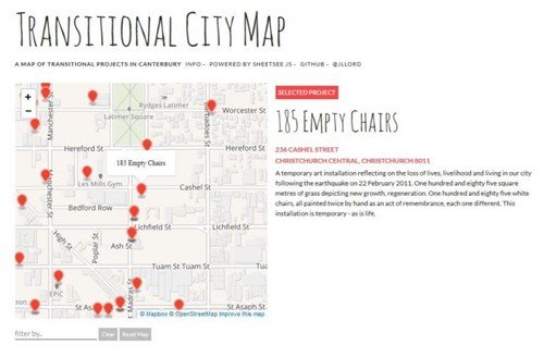 Of course, the map is not yet complete. Christchurch: The Transitional City Pt IV was a snapshot of a moment in time, and many new projects have arisen since its publication. Our hope is to continue to expand the collection, to capture even more of the projects that make our city a vibrant and interesting place to be.